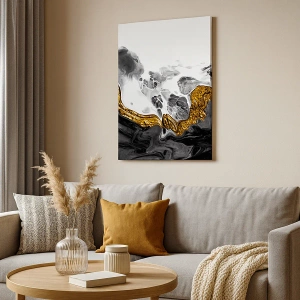 Cuadro sobre lienzo - Impresión de Imagen - Una composición abstracta con acentos dorados y negros. - 140x50cm - Composición orgánica - Decoración de pared moderna para salón y dormitorio ARTTOR