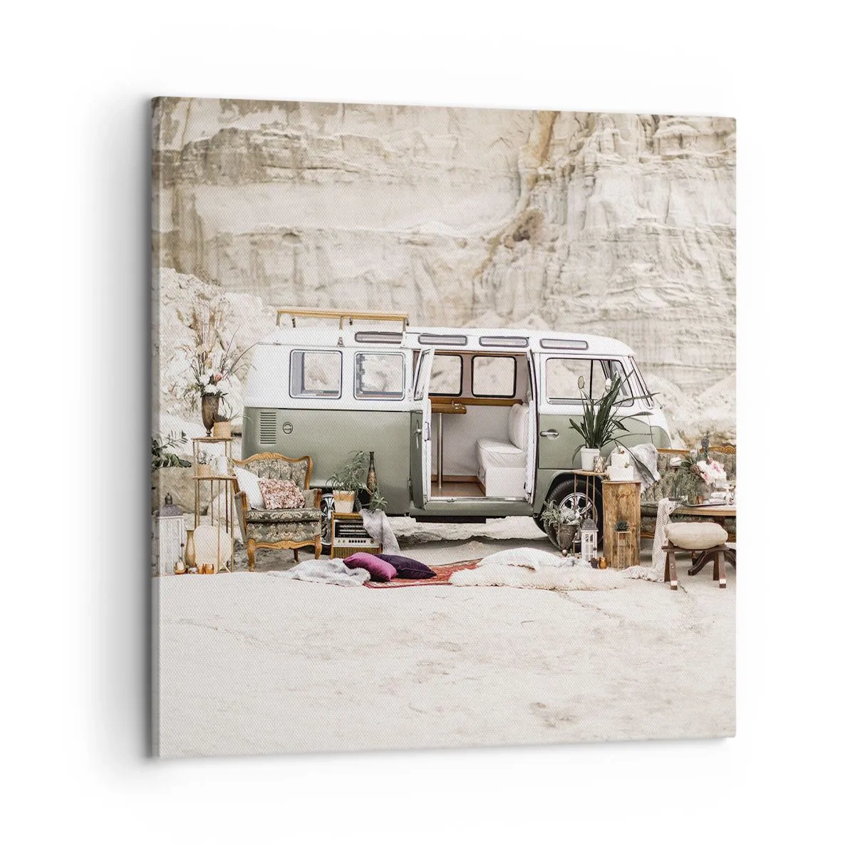 El lienzo se estira sobre un marco. Los lados y los bordes están impresos, creando una continuación de la imagen. El cuadro está listo para ser colgado en la pared. Cada producto tiene un enganche incorporado al marco y un kit de montaje (tornillo + taco).