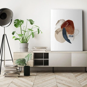 Cuadro sobre lienzo - Impresión de Imagen - Una composición abstracta con manchas en tonos tierra y azul marino. - 120x80cm - Composición ovalada - Decoración de pared moderna para salón y dormitorio ARTTOR