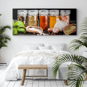 Las dimensiones de la imagen, 70x50 cm, y la tecnología de impresión en lienzo garantizan la máxima calidad y una reproducción fiel de los detalles. Cada elemento, desde los sutiles colores de las especias hasta los detalles de los frascos de vidrio, ha sido meticulosamente reproducido, creando una imagen realista e inspiradora. Será perfecto como decoración en una cocina, comedor o restaurante, creando un ambiente acogedor y una deliciosa inspiración.