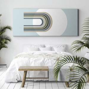 Cuadro sobre lienzo - Impresión de Imagen - Una composición minimalista con un círculo y líneas sobre un fondo pastel. - 160x50cm - Una atracción irresistible - Decoración de pared moderna para salón y dormitorio ARTTOR