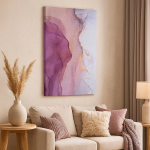 Cuadro sobre lienzo - Impresión de Imagen - Una composición abstracta en tonos morados y dorados. - 120x80cm - Olas de lila y púrpura - Decoración de pared moderna para salón y dormitorio ARTTOR