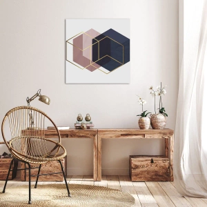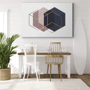 Cuadro sobre lienzo - Impresión de Imagen - Formas geométricas en líneas doradas sobre un fondo pastel. - 100x70cm - El poder de la sencillez - Decoración de pared moderna para salón y dormitorio ARTTOR