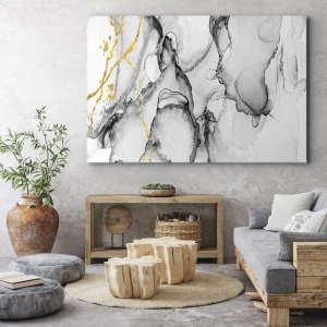 Cuadro sobre lienzo - Impresión de Imagen - Patrones abstractos en blanco y negro con acentos dorados - 120x80cm - Composición con motivo de oro - Decoración de pared moderna para salón y dormitorio ARTTOR