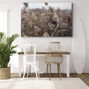 Cuadro sobre lienzo - Impresión de Imagen - Delicadas hierbas en tonos beige sobre el fondo de la naturaleza. - 100x70cm - Es hora de volar con el viento - Decoración de pared moderna para salón y dormitorio ARTTOR