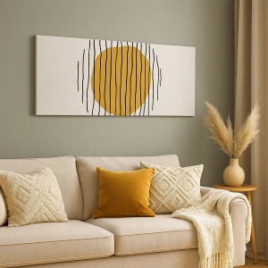 Cuadro sobre lienzo - Impresión de Imagen - Un motivo minimalista con un círculo amarillo y líneas negras. - 100x70cm - Abstracción cálida - Decoración de pared moderna para salón y dormitorio ARTTOR