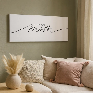 - Un lienzo minimalista de 70 x 50 cm con la frase "Te amo, mamá" sobre fondo blanco. Un regalo perfecto o una elegante pieza de decoración para el hogar.