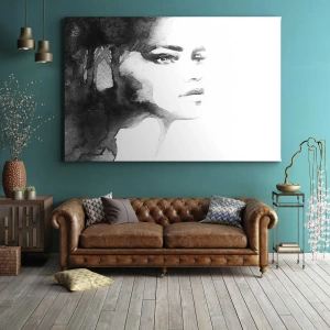 Cuadro sobre lienzo - Impresión de Imagen - Un retrato sutil de una mujer en tonos blanco y negro. - 140x50cm - Hecho de misterio y niebla - Decoración de pared moderna para salón y dormitorio ARTTOR