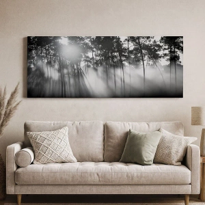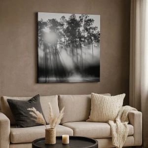 Cuadro sobre lienzo - Impresión de Imagen - Bosque blanco y negro en la niebla de la mañana. - 120x80cm - Sol imparable - Decoración de pared moderna para salón y dormitorio ARTTOR