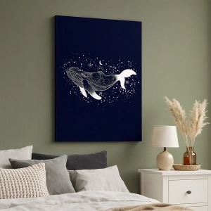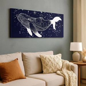 Cuadro mural - En el océano del universo - Ilustración gráfica de una ballena en estilo cósmico