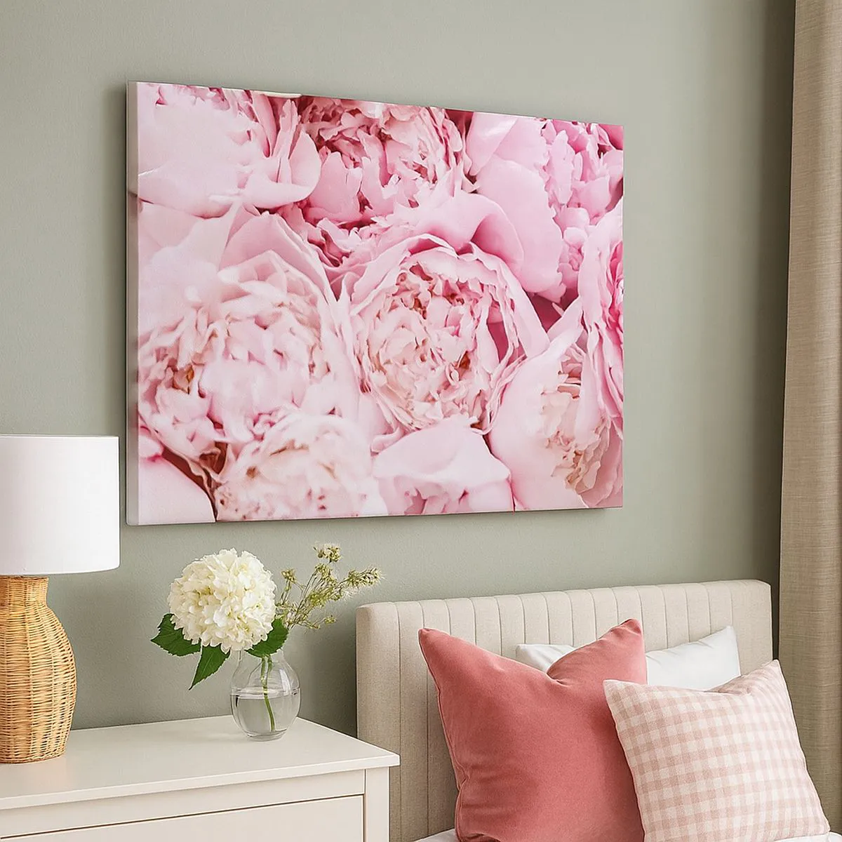 Cuadro mural - Abrazos y Fragantes - Ramo de Peonías Rosas en Primer Plano