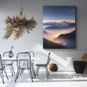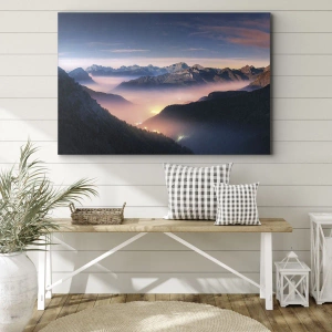 Cuadro sobre lienzo - Impresión de Imagen - Un paisaje de montaña con un valle lleno de niebla. - 120x50cm - Luz en los valles - Decoración de pared moderna para salón y dormitorio ARTTOR