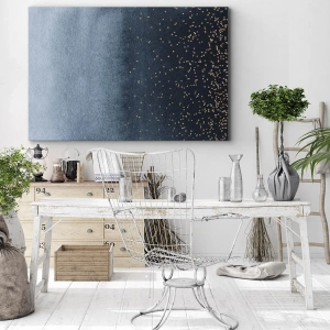 Cuadro sobre lienzo - Impresión de Imagen - Degradados azules con sutiles acentos dorados - 140x50cm - Composición - fases azules - Decoración de pared moderna para salón y dormitorio ARTTOR