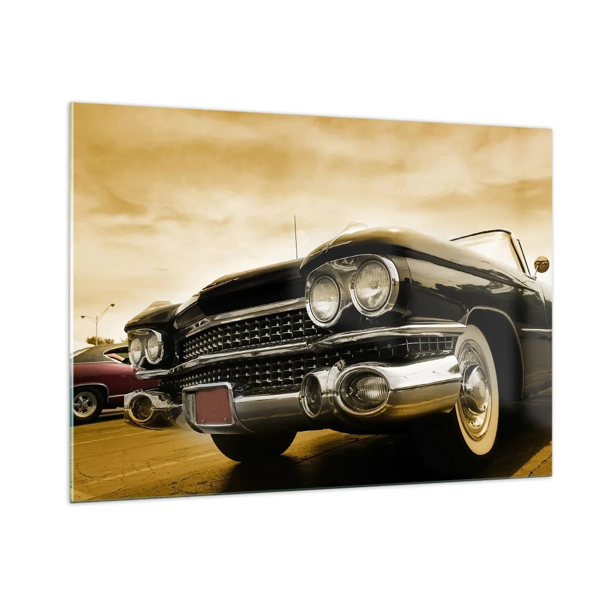 Cuadro sobre vidrio - Impresiones sobre Vidrio - El frontal de un coche clásico en un elegante estilo retro. - 100x70cm - Los clásicos nunca desaparecen - Decoración de pared moderna para salón y dormitorio ARTTOR