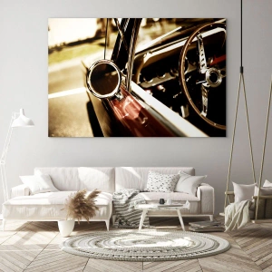Cuadro sobre vidrio - Impresiones sobre Vidrio - Interior de coche clásico en estilo retro - 120x80cm - Un coche con alma - Decoración de pared moderna para salón y dormitorio ARTTOR