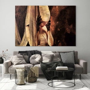 Cuadro sobre vidrio - Impresiones sobre Vidrio - Una mujer con velo y un estilo misterioso sobre un fondo oscuro. - 70x100cm - Entre el bien y el mal - Decoración de pared moderna para salón y dormitorio ARTTOR