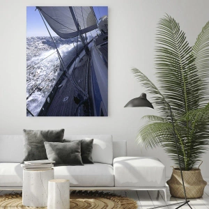 Cuadro sobre vidrio - Impresiones sobre Vidrio - Un yate navegando en un mar tempestuoso con tiempo soleado. - 50x70cm - Sé lo que es ser un pájaro - Decoración de pared moderna para salón y dormitorio ARTTOR