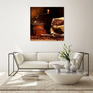 Cuadro sobre vidrio - Impresiones sobre Vidrio - Bodegón con granos de café y molinillo - 40x40 cm