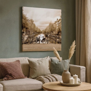 Cuadro sobre lienzo - Impresión de Imagen - Puente para bicicletas sobre el canal en sepia - 140x50cm - Holanda solo hay una - Decoración de pared moderna para salón y dormitorio ARTTOR