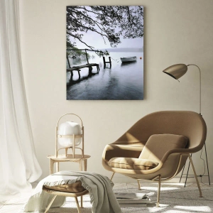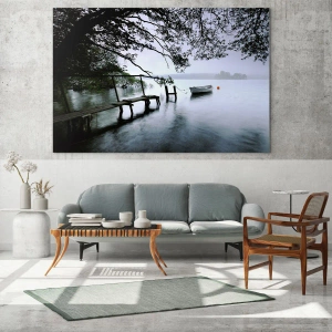 El cuadro "Ya estás descansando" representa un paisaje increíblemente atmosférico con un muelle de madera sobre un lago envuelto en niebla. El agua, la niebla y el paisaje natural circundantes crean una composición llena de paz y reflexión. Un barco amarrado se ve al fondo, aportando misterio y profundidad al conjunto. Es una excelente opción para quienes aprecian la sutil belleza de la naturaleza y la decoración de interiores con un toque evocador.