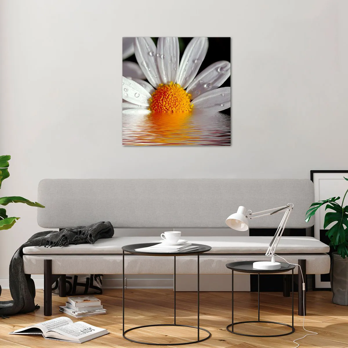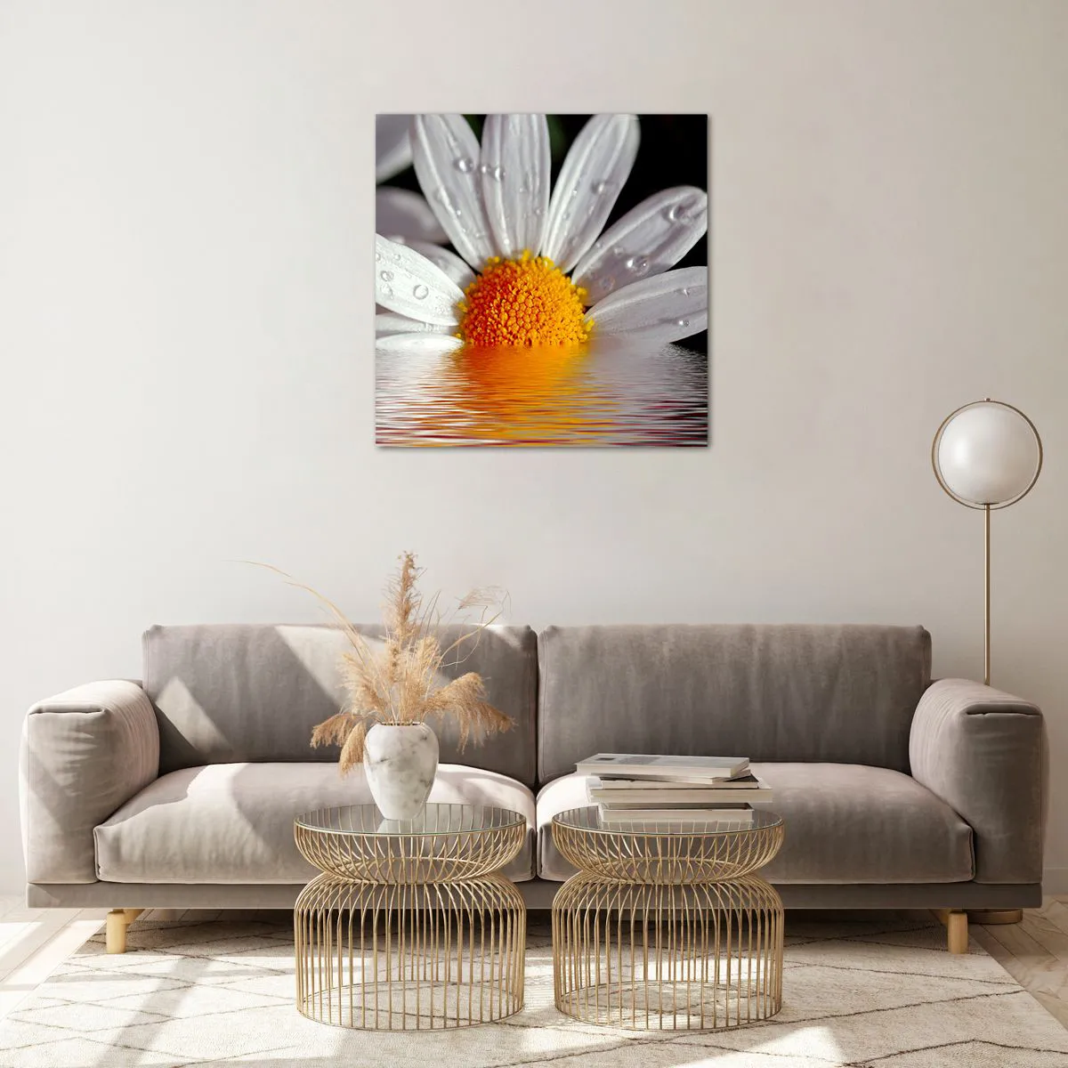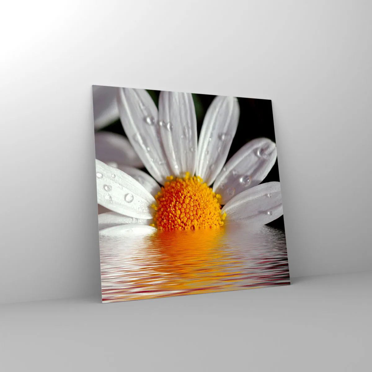 Cuadro sobre vidrio - Impresiones sobre Vidrio - El sol naciente de una margarita - 60x60 cm