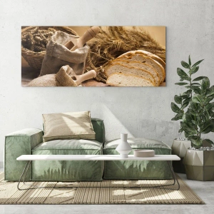 Cuadro sobre vidrio - Impresiones sobre Vidrio - Un paisaje con pan, harina y espigas de trigo en estilo rústico. - 80x120cm - Corte perfecto - Decoración de pared moderna para salón y dormitorio ARTTOR