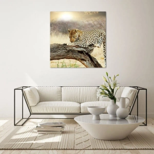 Cuadro sobre vidrio - Impresiones sobre Vidrio - Un leopardo descansando sobre una rama de madera. - 50x70cm - Voy por mi cuenta - Decoración de pared moderna para salón y dormitorio ARTTOR