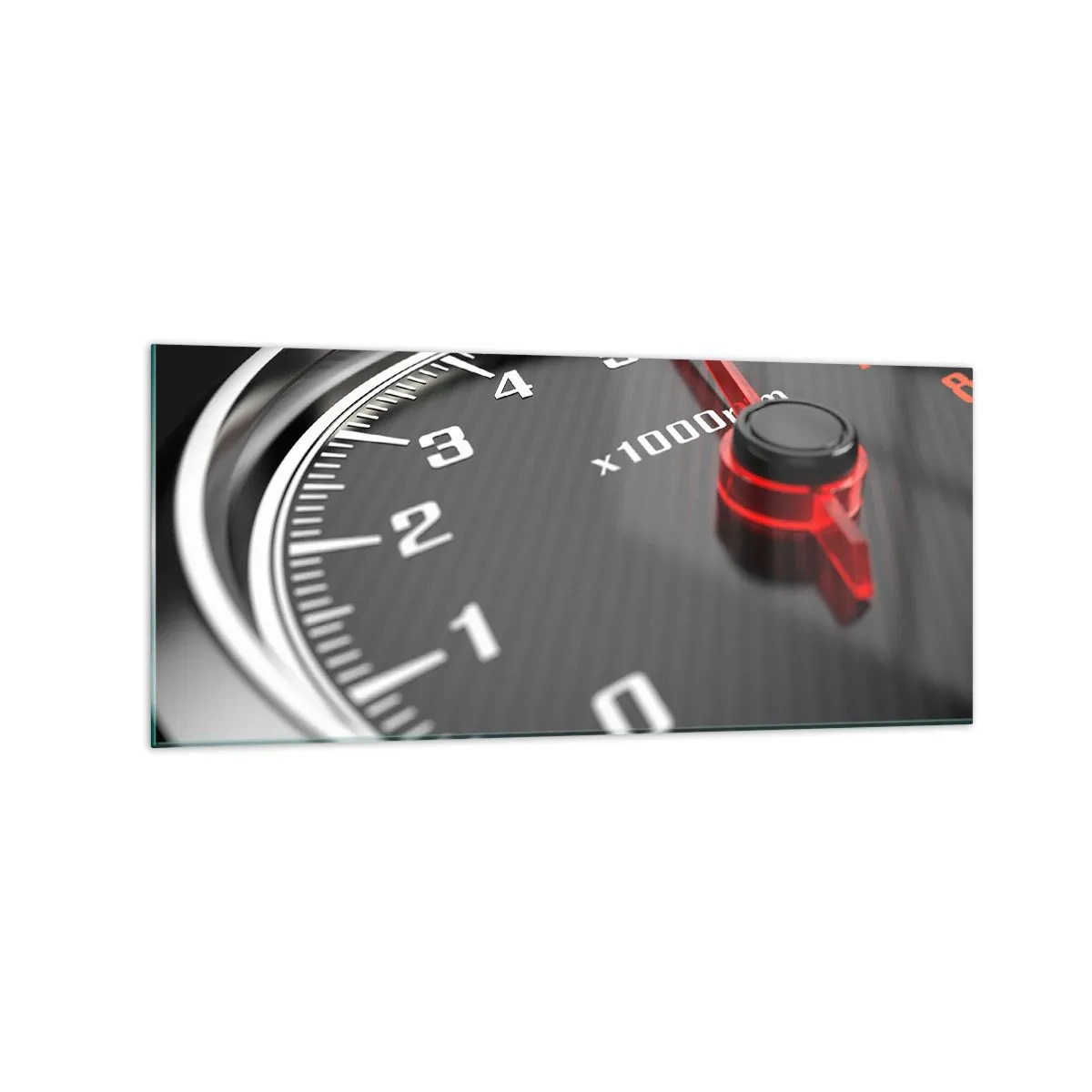 Cuadro sobre vidrio - Impresiones sobre Vidrio - Primer plano del tacómetro con la aguja roja - 120x50cm - Pisa a fondo - Decoración de pared moderna para salón y dormitorio ARTTOR