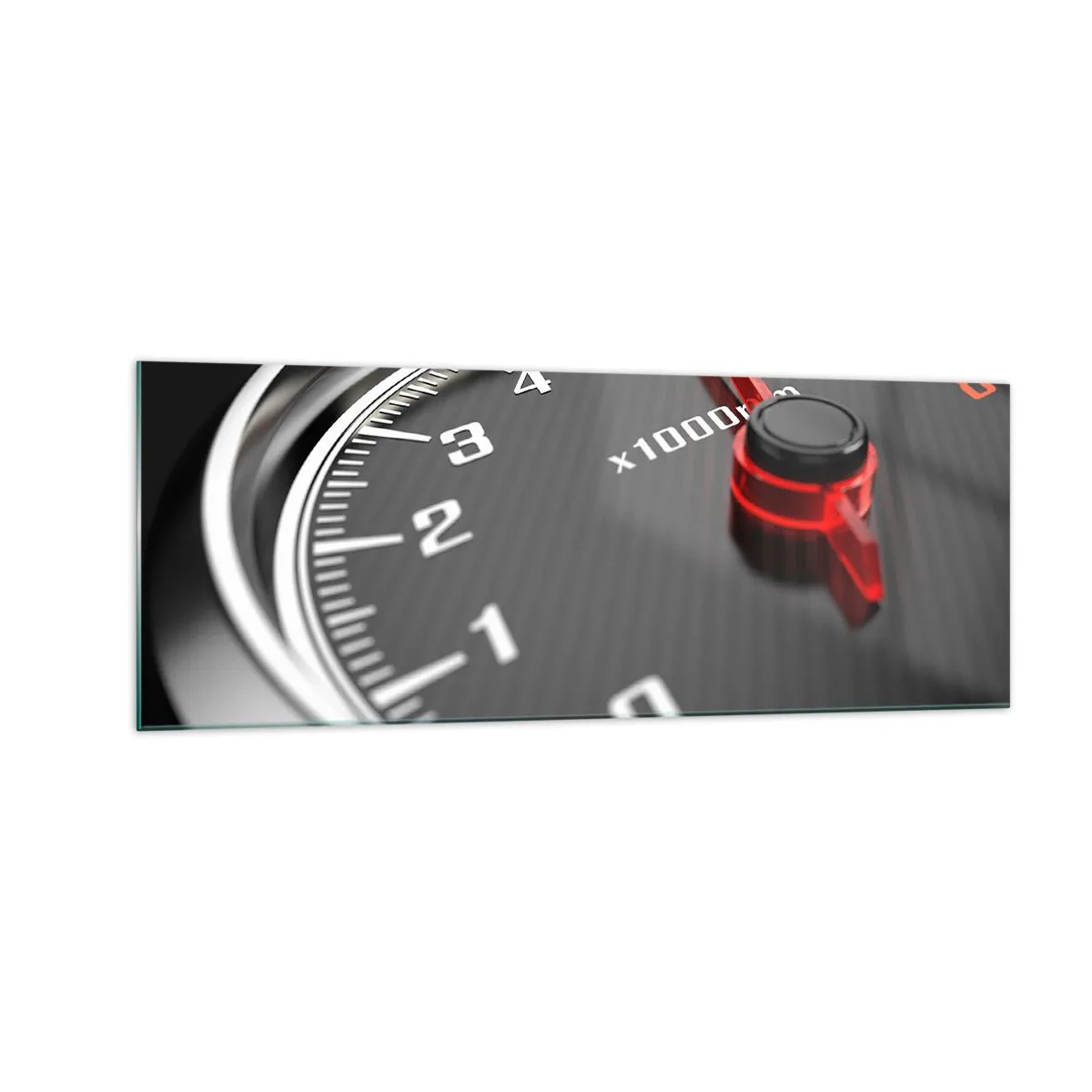 Cuadro sobre vidrio - Impresiones sobre Vidrio - Primer plano del tacómetro con la aguja roja - 140x50cm - Pisa a fondo - Decoración de pared moderna para salón y dormitorio ARTTOR