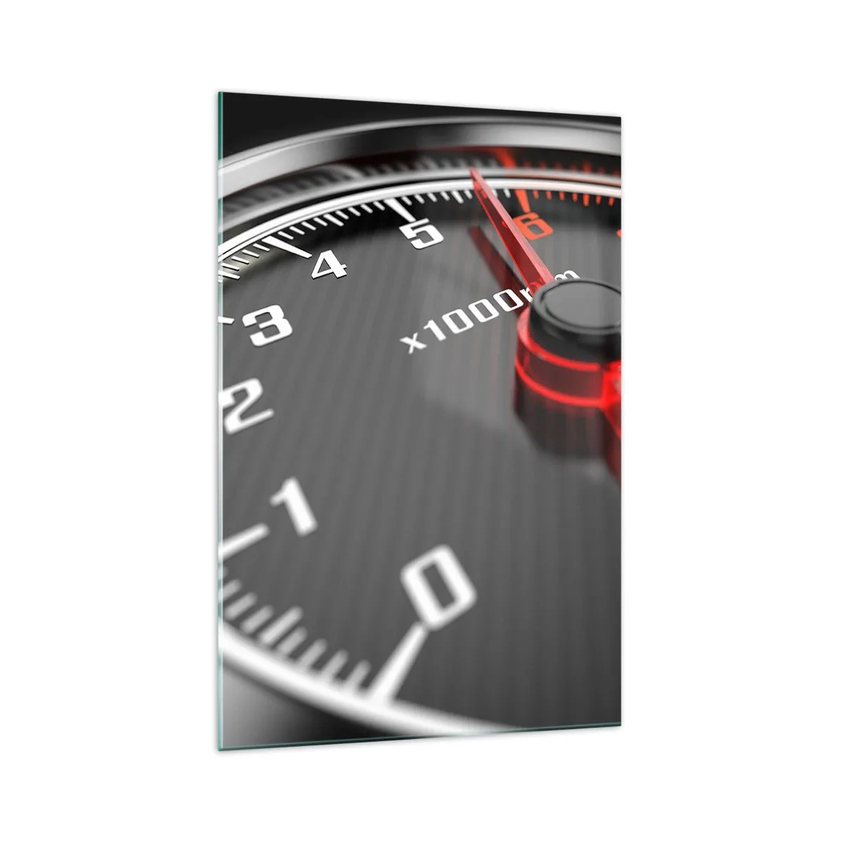 Cuadro sobre vidrio - Impresiones sobre Vidrio - Primer plano del tacómetro con la aguja roja - 70x100cm - Pisa a fondo - Decoración de pared moderna para salón y dormitorio ARTTOR