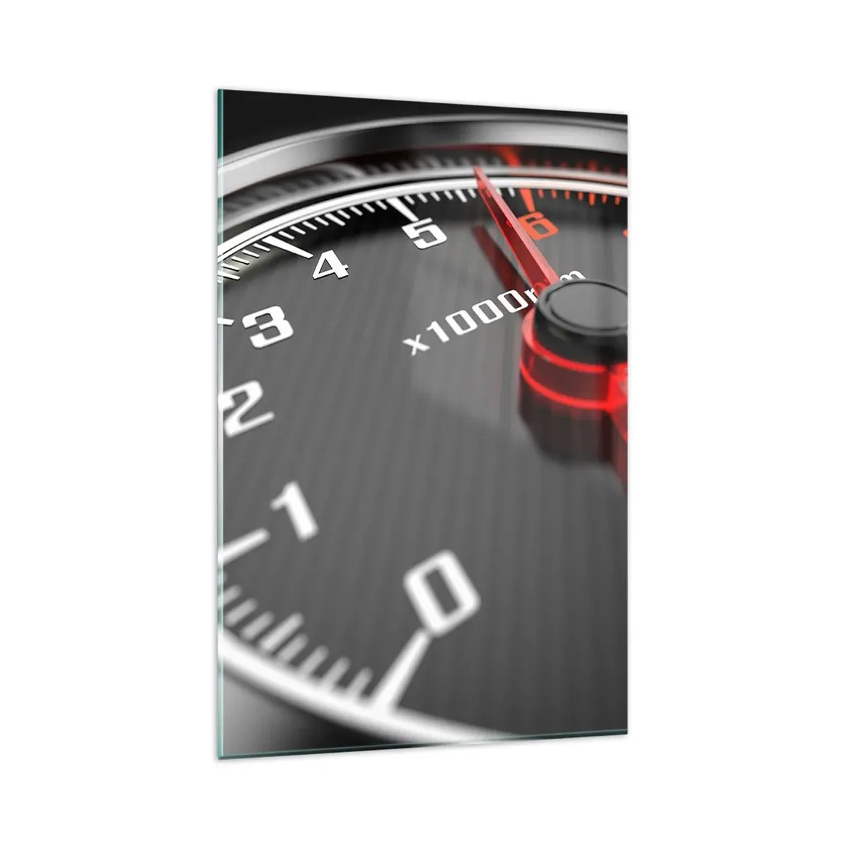 Cuadro sobre vidrio - Impresiones sobre Vidrio - Primer plano del tacómetro con la aguja roja - 80x120cm - Pisa a fondo - Decoración de pared moderna para salón y dormitorio ARTTOR