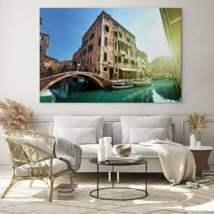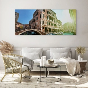 Cuadro sobre vidrio - Impresiones sobre Vidrio - Venecia con canal, puente y edificios históricos - 70x50cm - Venecia - Amore Mio - Decoración de pared moderna para salón y dormitorio ARTTOR