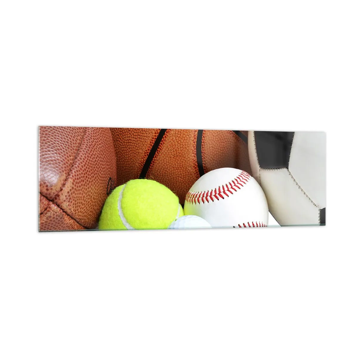 Cuadro sobre vidrio - Impresiones sobre Vidrio - Balones de diversas disciplinas deportivas - 160x50cm - Unidos por el deporte - Decoración de pared moderna para salón y dormitorio ARTTOR