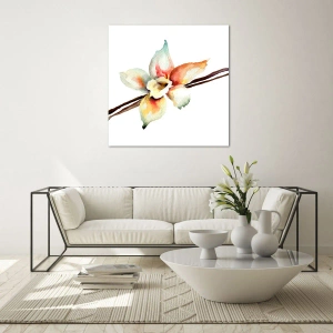 Cuadro sobre vidrio - Impresiones sobre Vidrio - Ilustración en acuarela de una flor de vainilla sobre un fondo blanco. - 50x70cm - Dulzura salpicada de pintura - Decoración de pared moderna para salón y dormitorio ARTTOR