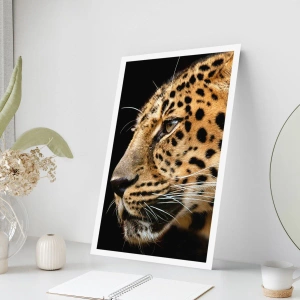 Póster - Perfil de un leopardo sobre un fondo oscuro - 50x70cm - Tranquilo, concentrado, preparado - Decoración de pared moderna para salón y dormitorio ARTTOR