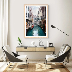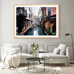 Póster en marco roble claro - Paisaje veneciano con góndola y puente - 61x91 cm