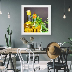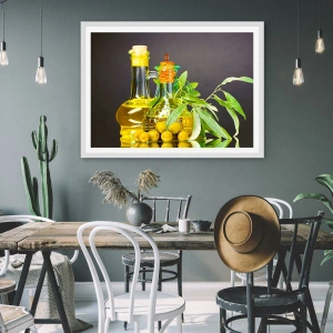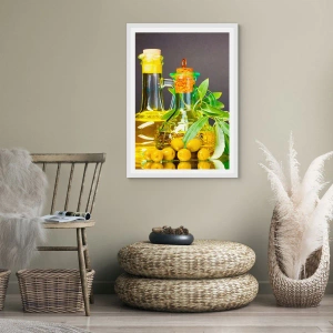 Póster en marco blanco - Bodegón con aceitunas y aceite - 30x40 cm