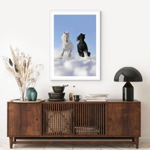 Póster en marco blanco - Galope blanco y negro - 61x91 cm