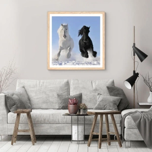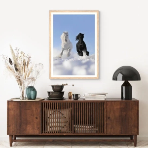 Póster en marco roble claro - Galope blanco y negro - 70x100 cm