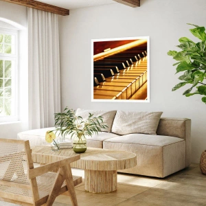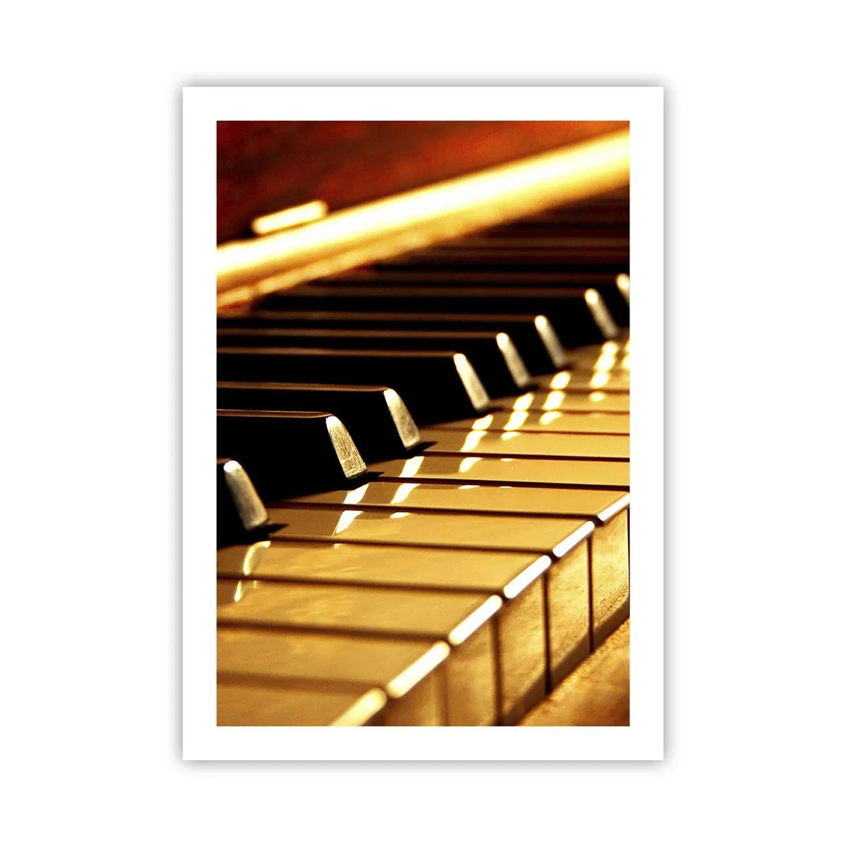 Póster - Primer plano de las teclas del piano bajo una luz dorada - 50x70cm - Posibilidades ilimitadas - Decoración de pared moderna para salón y dormitorio ARTTOR