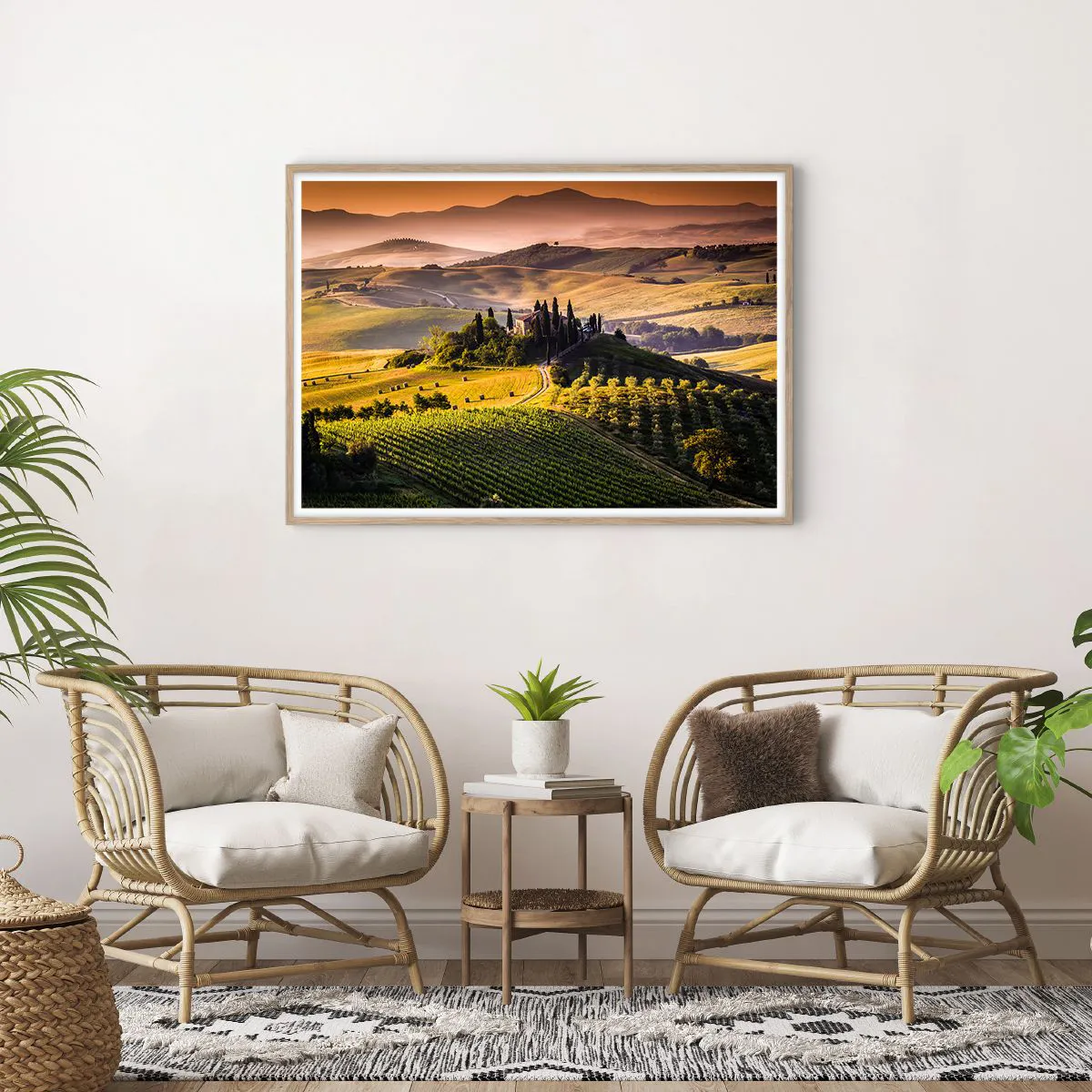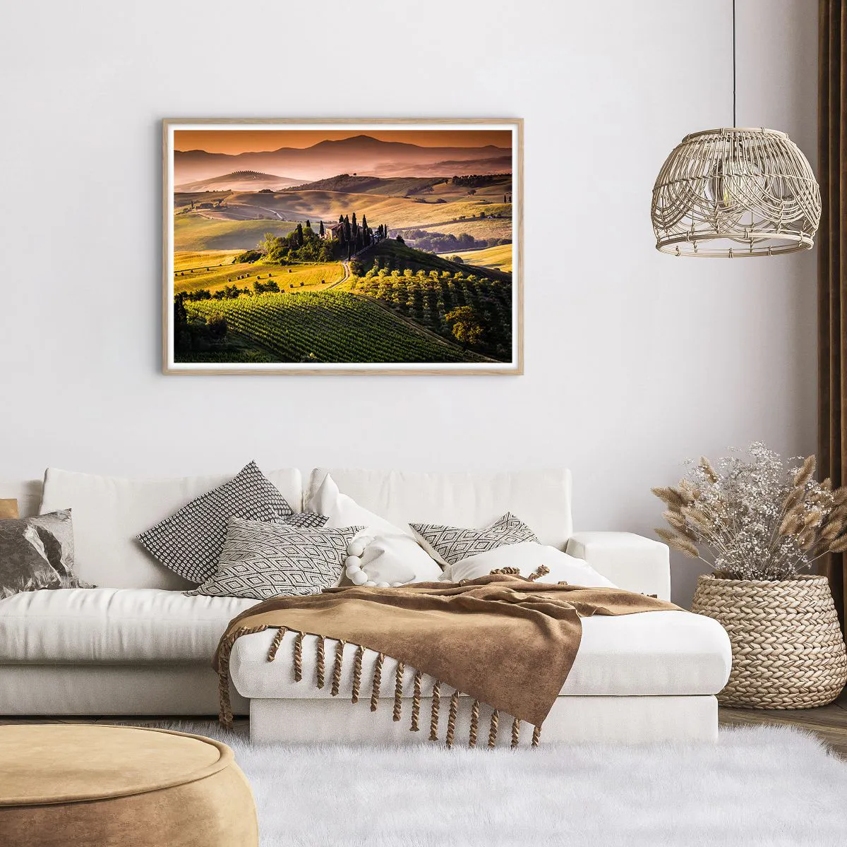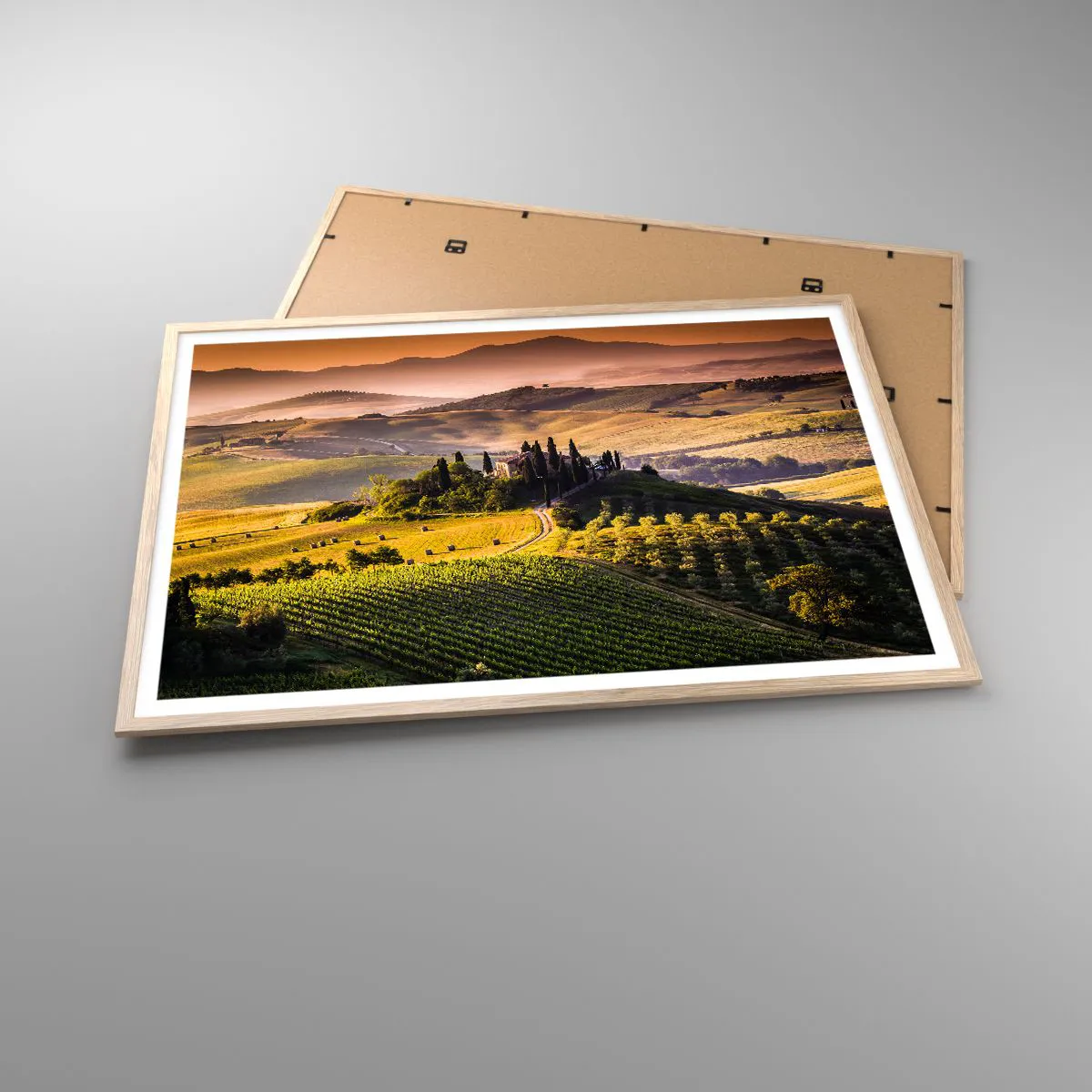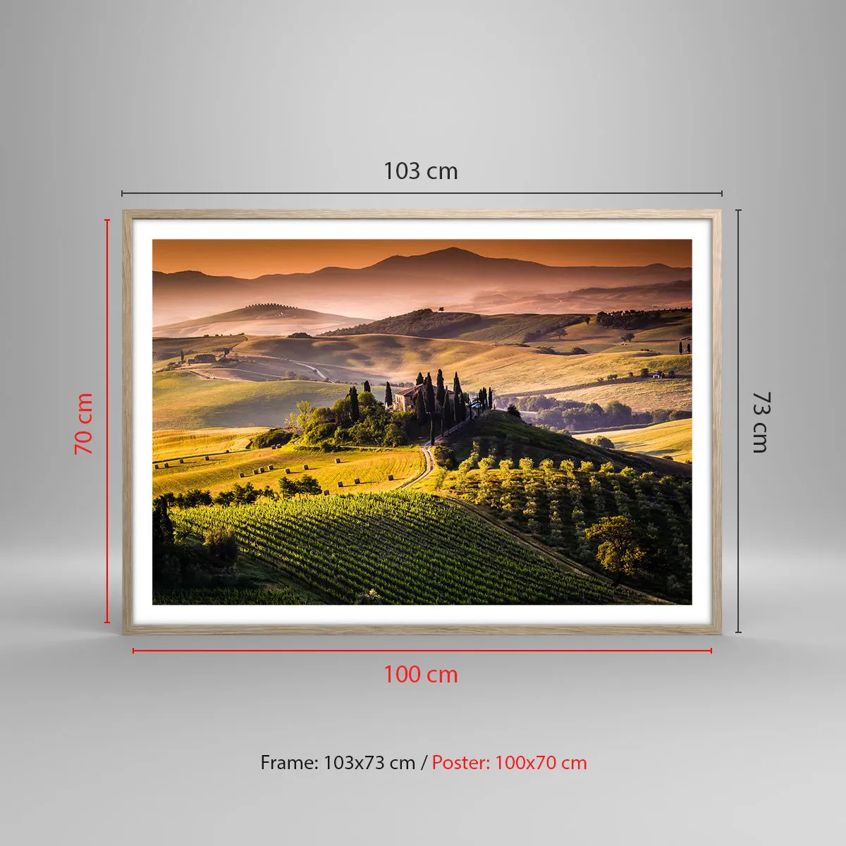 Póster en marco roble claro - Paisaje toscano - 100x70 cm