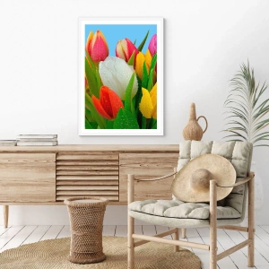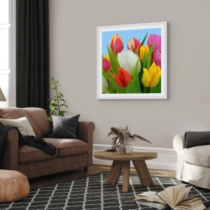 Póster en marco blanco - Arco iris floral en gotas de rocío - 30x30 cm