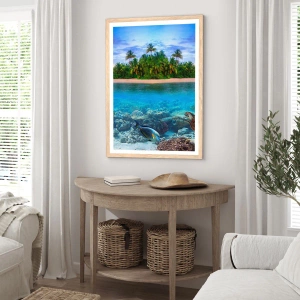 Póster en marco roble claro - Una isla paradisíaca te invita - 30x30 cm
