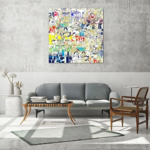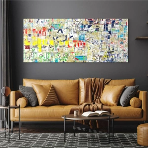 Cuadro sobre vidrio - Impresiones sobre Vidrio - Una composición abstracta con mezcla de colores e inscripciones. - 50x70cm - Simplemente agradable a la vista - Decoración de pared moderna para salón y dormitorio ARTTOR