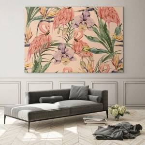 Cuadro sobre vidrio - Impresiones sobre Vidrio - Un ballet rosa en flores - 90x30 cm