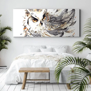 Cuadro sobre lienzo - Impresión de Imagen - Un búho con plumas místicas en forma artística de acuarela. - 120x80cm - Venía de un mundo de magia - Decoración de pared moderna para salón y dormitorio ARTTOR