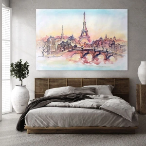 • Esta pintura, que representa el romántico panorama de París con la Torre Eiffel al fondo, está realizada en un sutil estilo de acuarela. Es la decoración perfecta para los amantes del arte y la elegancia francesa.