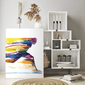 Cuadro sobre vidrio - Impresiones sobre Vidrio - Silueta abstracta de un corredor en colores dinámicos - 120x80cm - Corre a través del arco iris - Decoración de pared moderna para salón y dormitorio ARTTOR