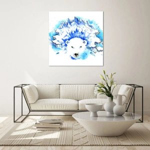 Cuadro sobre vidrio - Impresiones sobre Vidrio - Pintura artística de acuarela de un oso polar con un motivo helado. - 80x120cm - El rey del Ártico con una corona de hielo - Decoración de pared moderna para salón y dormitorio ARTTOR