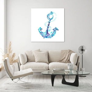 Cuadro sobre vidrio - Impresiones sobre Vidrio - Ancla con motivos náuticos en estilo artístico - 100x70cm - Los secretos del mar - Decoración de pared moderna para salón y dormitorio ARTTOR